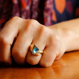 A selection of items in our shop featuring December's modern birthstones zircon, blue topaz, and tanzanite, and its traditional birthstones turquoise and lapis lazuli.