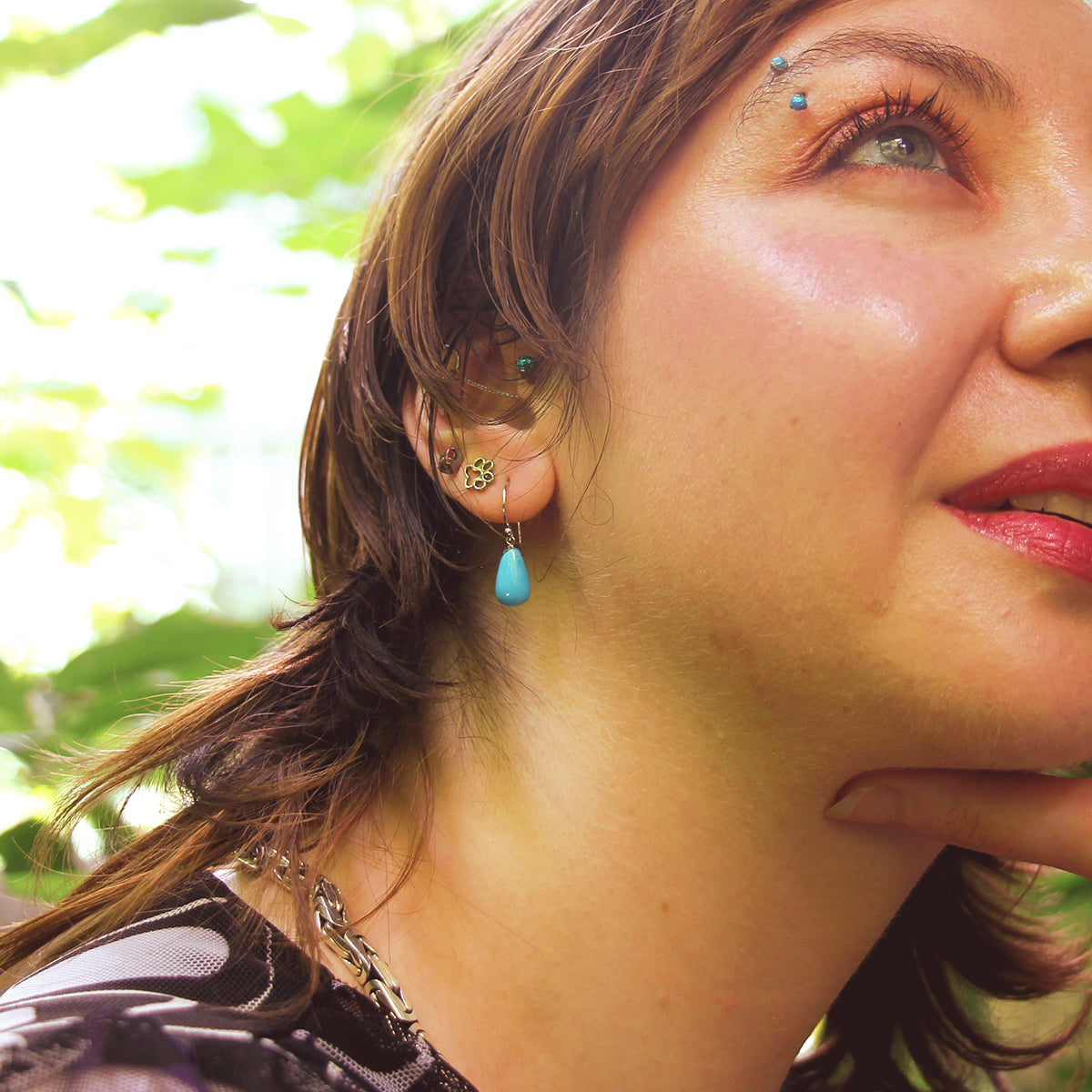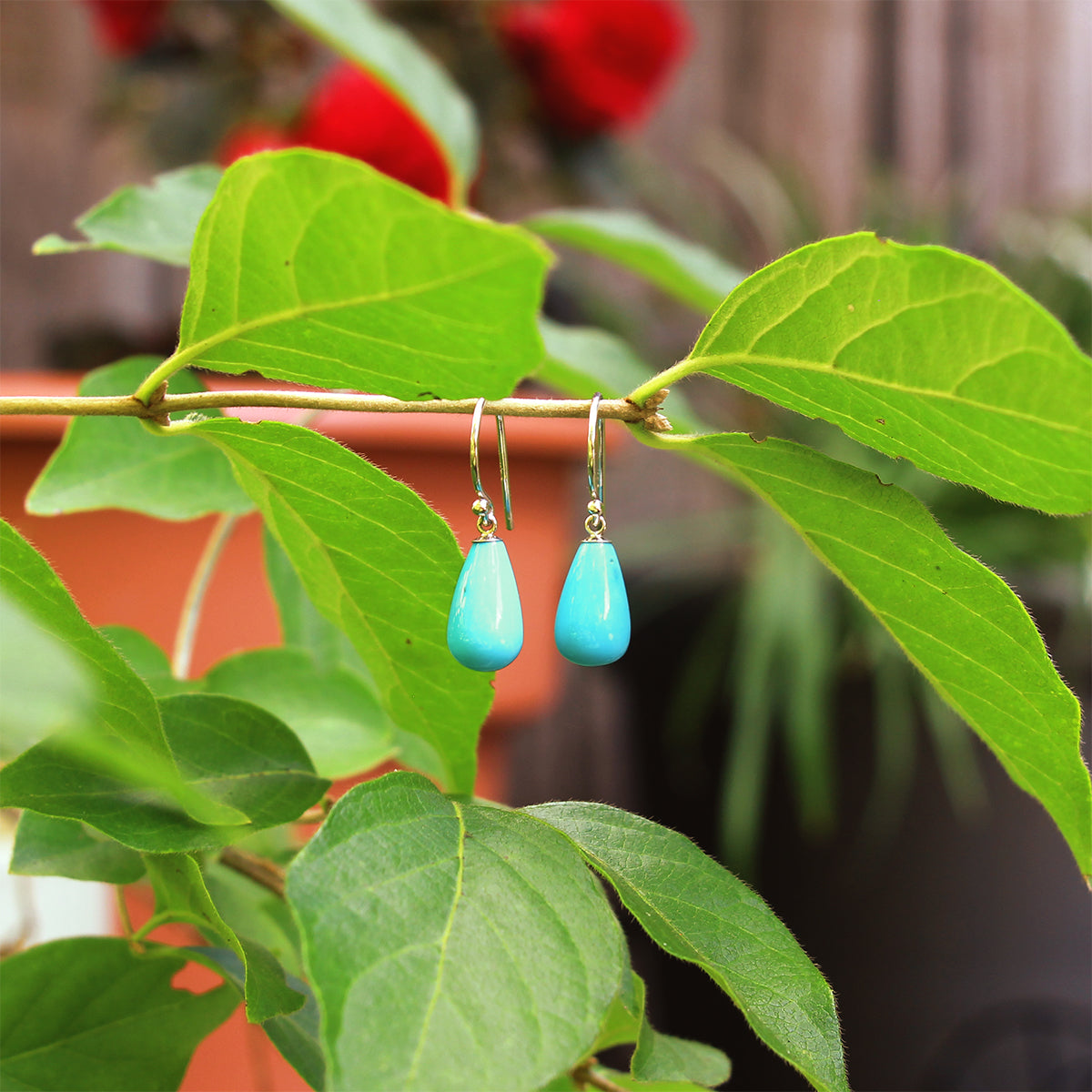 These playful drop earrings are made from 14K white gold and turquoise from the Sleeping Beauty mine in Globe, AZ. Said mine closed in 2012, so these iconic solid sky-blue precious gemstones are only available in a finite supply! Handmade by us in our Ann Arbor, Michigan-based studio.