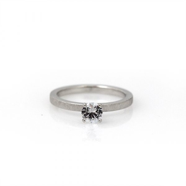 This twinkling sapphire is set in a narrow band with a hand-textured finish. This is a one-of-a-kind estate item, fully restored to a showroom finish. This ring has an appraised value of at least $1,285.