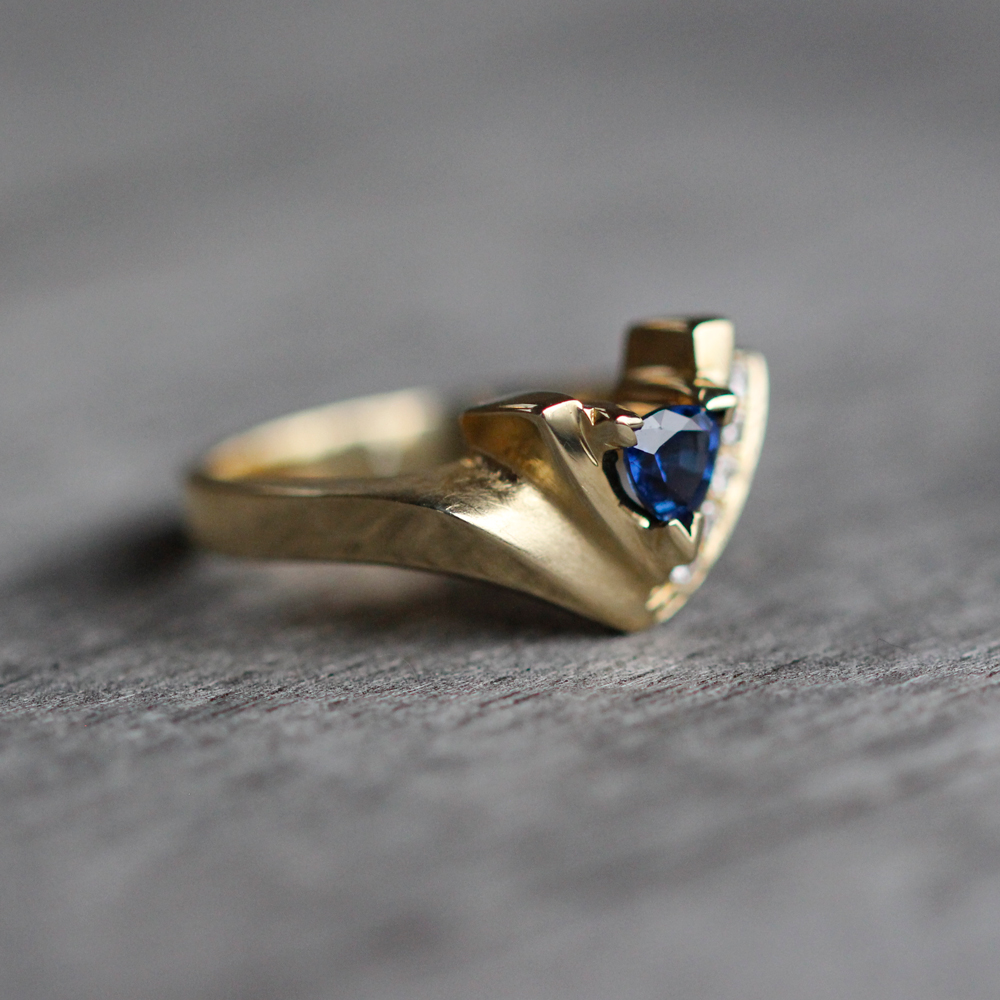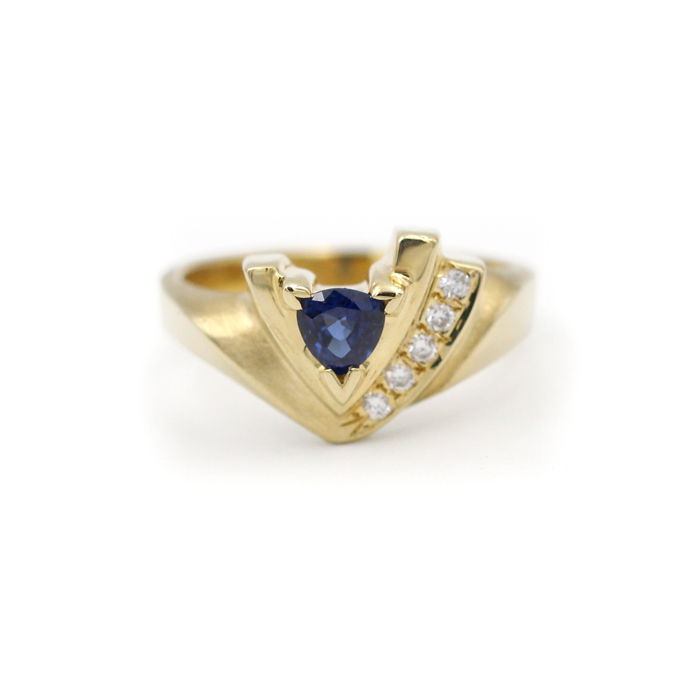 Retro 14K Yellow Gold, Trillion Sapphire, and Diamond Ring