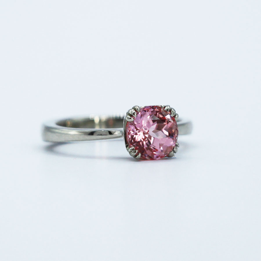 Nestled into striking 14K extra-white claw prongs, the warm, glittering facets of this stunning 1.88ct lab-grown sapphire are positively stunning. Handmade by us in our Ann Arbor, Michigan-based studio.