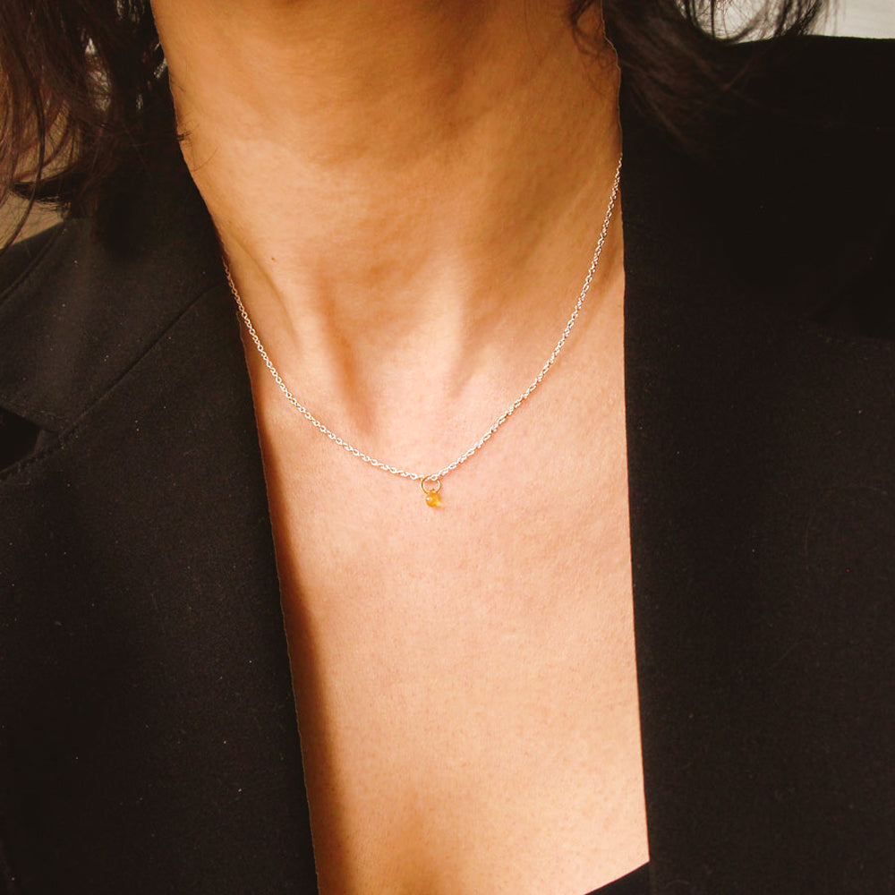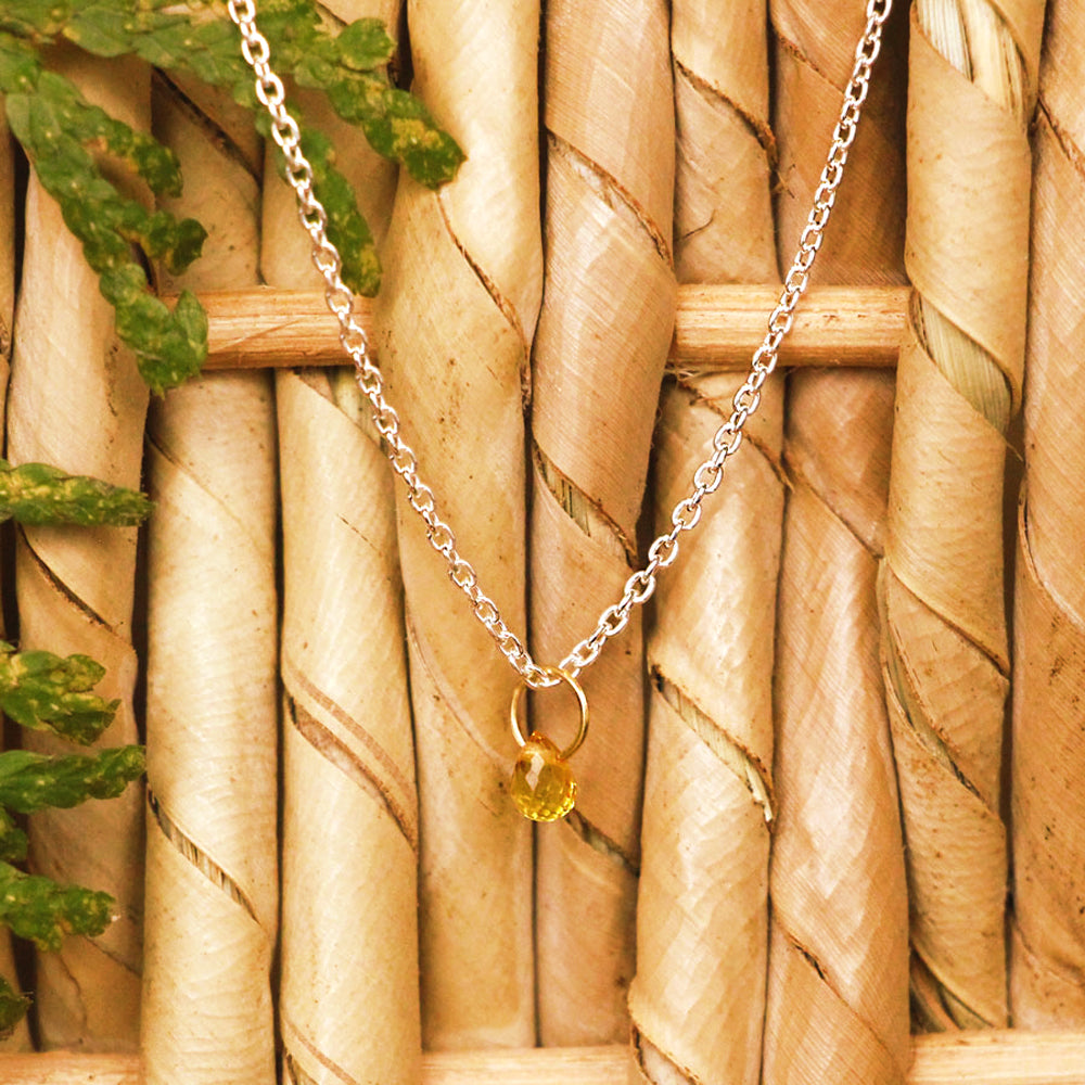 A sparkly, dainty yellow sapphire briolette necklace, perfect for layering. Handmade by us in our Ann Arbor, Michigan-based studio.