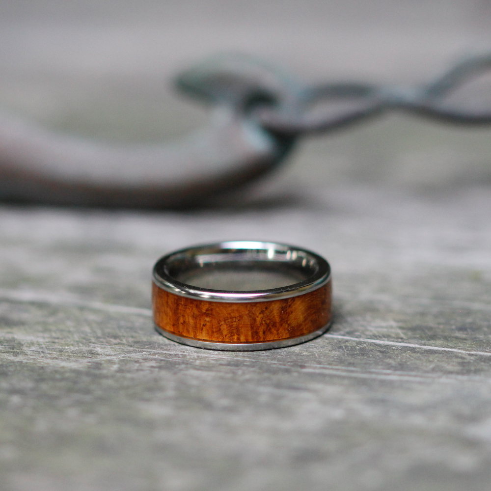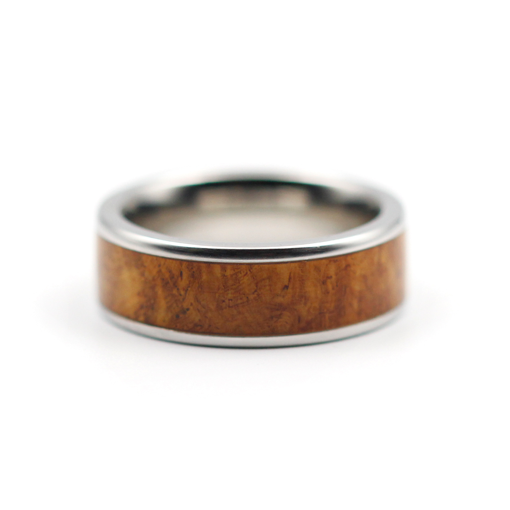 Vitalium and Burl Wood Inlay Ring