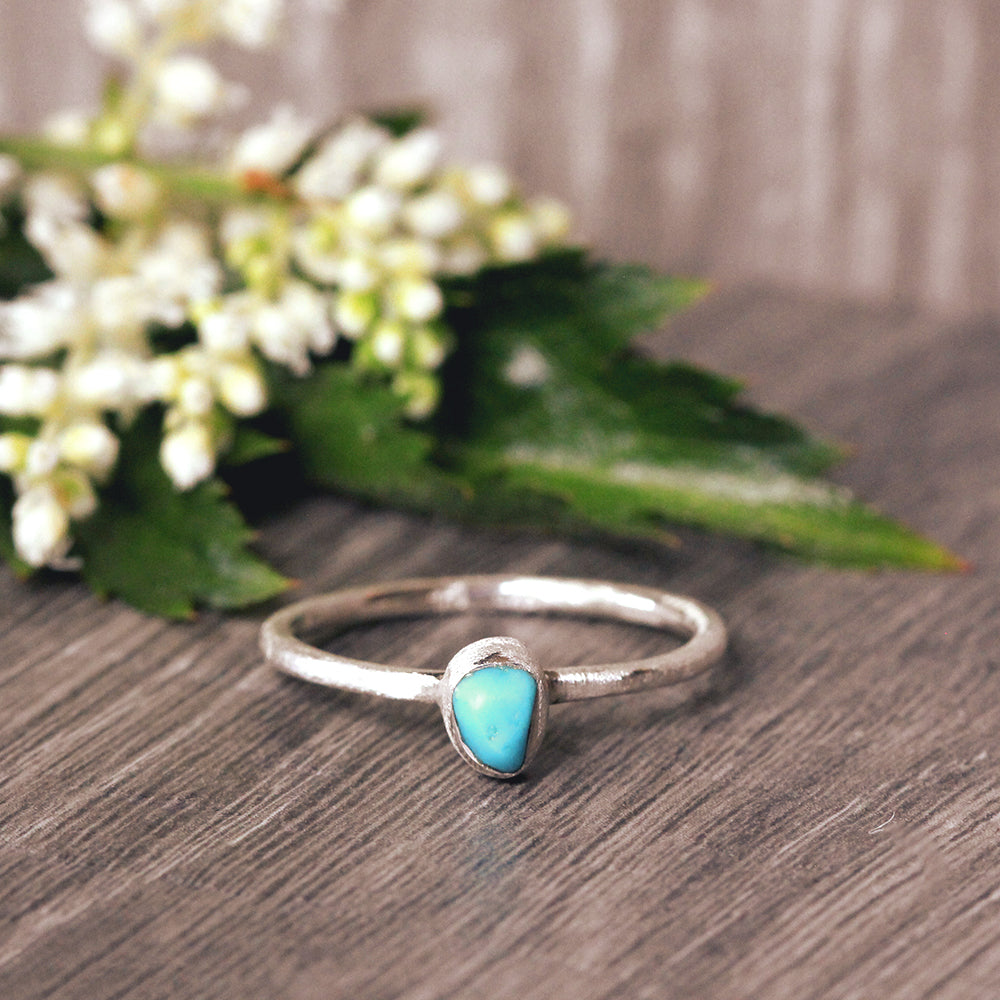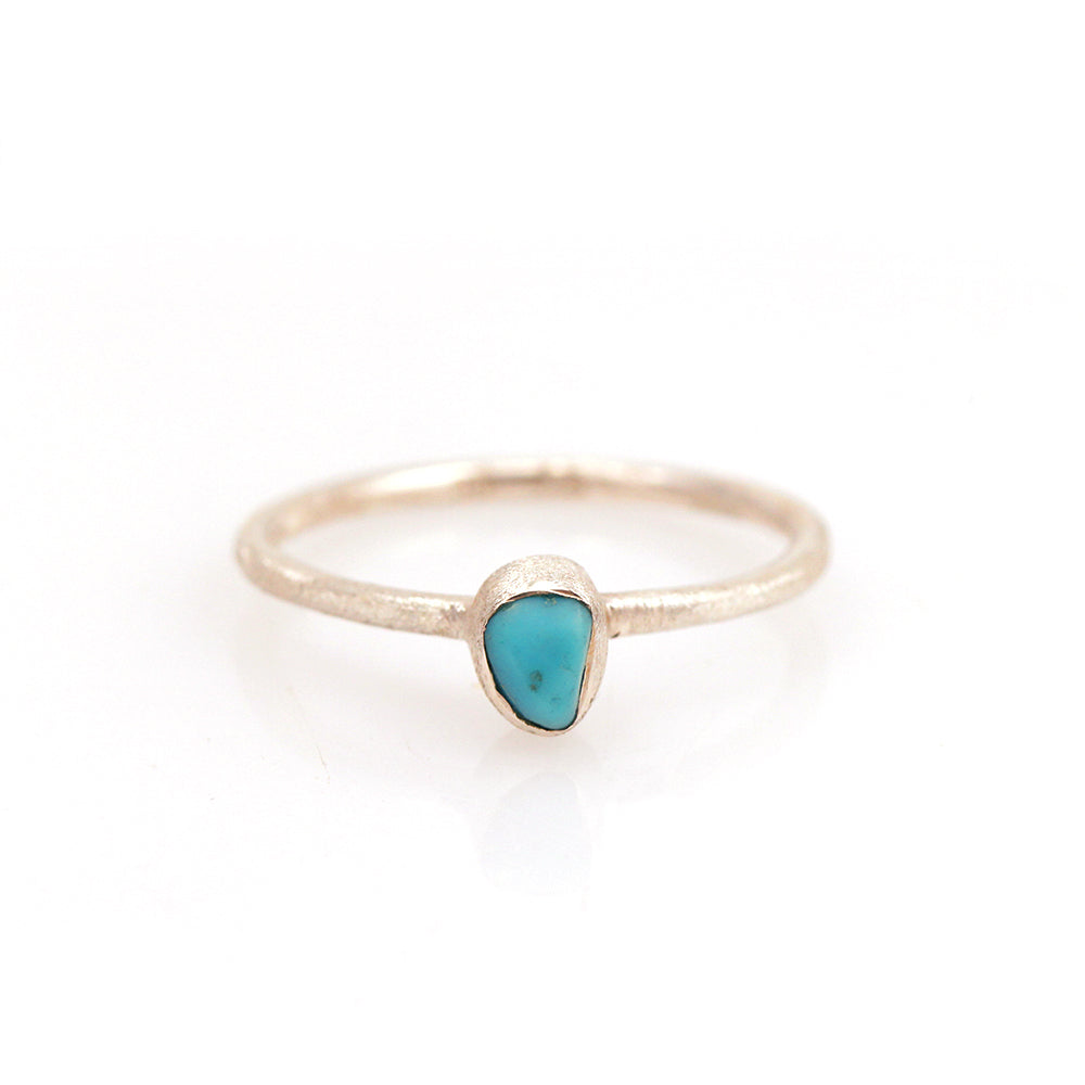 A delicate ring featuring a colorful turquoise nugget nestled in matte-finished sterling silver. Ideal for stacking! Handmade by Abracadabra-exclusive artist MOROKA, a mother/daughter/daughter team committed to creating beautiful jewelry for all.