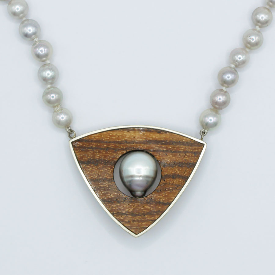 14K White Gold, Wood and Grey Cultured Pearl Necklace