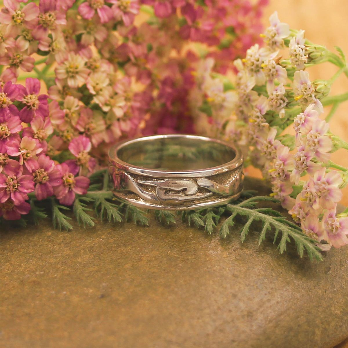 This Abracadabra signature design depicts two herons intertwined as Celtic knots. An enduring symbol of love and devotion, the heron is known for choosing one partner for life. Crafted in sterling silver and handmade by us in our Ann Arbor, Michigan-based studio.