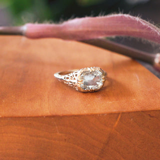 14K White Gold, Platinum, and Aquamarine Antique Ring
